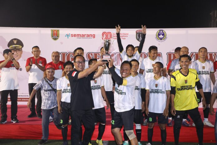 SEMARANG – Mewakili wali kota Semarang, Agustina Wilujeng, Wakil Wali Kota Semarang, Iswar Aminuddin Minggu (28/9) malam menghadiri Liga Sepak Bola RT/RW Kota Semarang yang digelar di Stadion Citarum. Ajang ini merupakan inisiatif Pemerintah Kota melalui Dinas Kepemudaan dan Olah raga, sebagai wadah kebersamaan warga serta upaya memperkuat hubungan sosial di tingkat akar rumput.