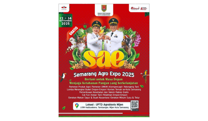 SEMARANG – Pemerintah Kota Semarang melalui Dinas Pertanian menggelar Semarang Agro Expo 2025. Acara ini bertujuan untuk mempromosikan dan memasarkan produk unggulan pertanian serta olahan hasil pertanian, peternakan, dan perikanan di Kota Semarang. Pameran pertanian tersebut berlangsung pada 12 – 14 September 2025.